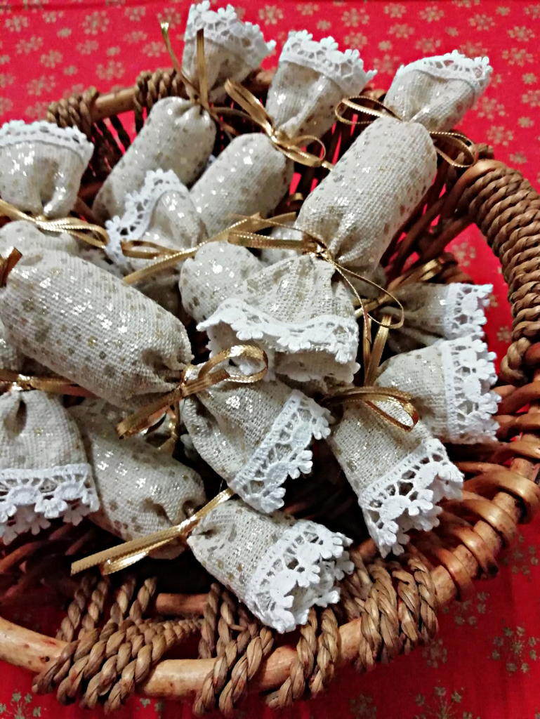 1. Salónky - voňavé látkové bonbóny na stromeček